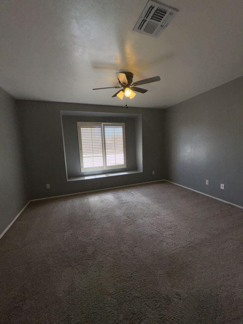 Open floor plan with a great room that features a breakfast bar in the kitchen, gas log fireplace in the living room. Plantation shutters in every room. Spacious master with walk-in closet, dual sinks, separate shower garden tub with jets! Oversized backyard with grass gravel landscaping a storage shed. Extended covered patio looks out to the beautiful Mountain Views! No cats. Pets approved on a case by case basis.
