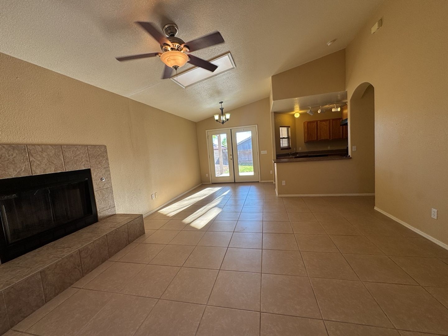 This home has an open floor plan, 17" tile throughout house, high ceilings, skylights, fireplace and french doors leading to back patio/yard. Oversized master bedroom with sliding glass door leading to backyard. Large walk-in closet, garden tub, dual vanities and separate water closet. Two car garage with washer and a dryer. A/C, fridge, dishwasher, disposal and gas stove.